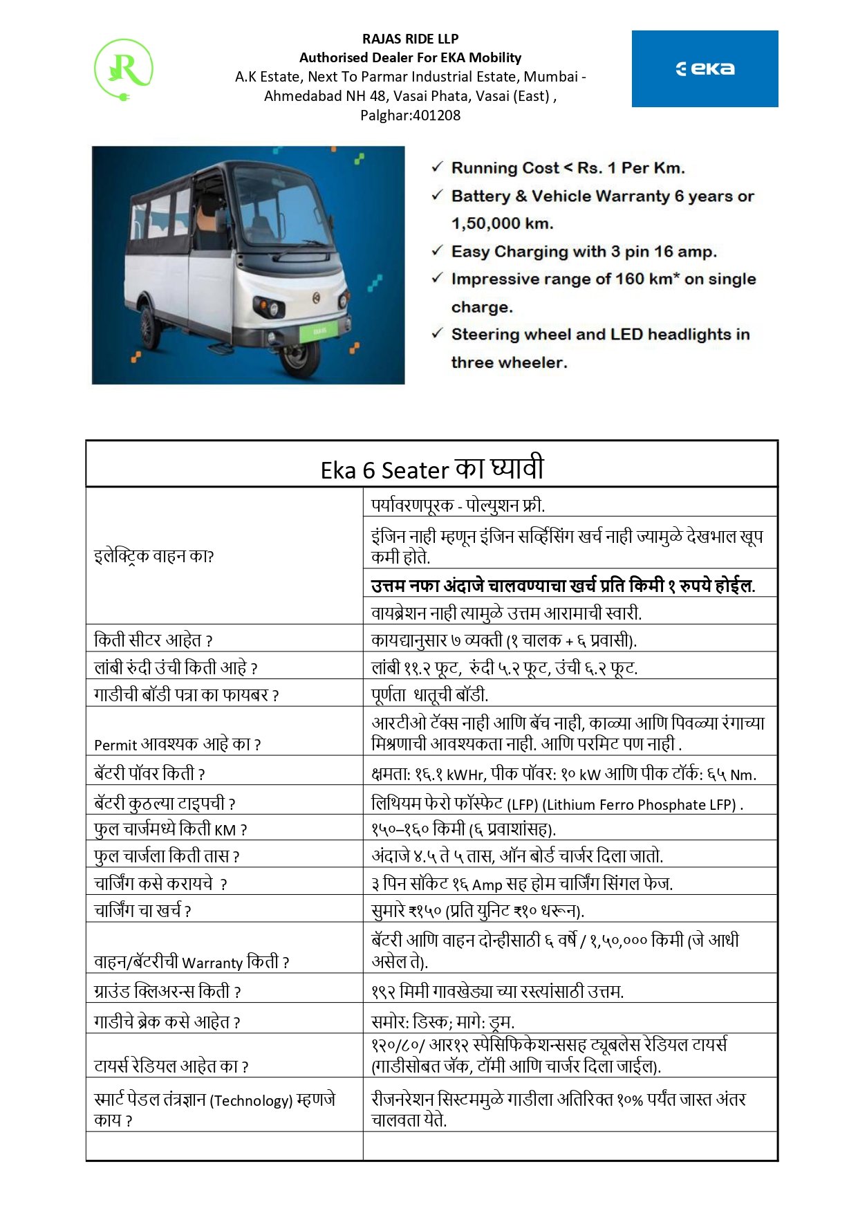 We, Rajas Ride is an Authorised dealer for EKA Mobility- India’s emerging electric commercial vehicle manufacturers. The business provides customers with the opportunity to explore, purchase, and service electric vehicles, backed by manufacturer support and genuine parts. Electric vehicle range varies from 3 Wheeler (Cargo & Auto Rickshaws) to Bus ( upto 50 seater) & Trucks ( upto 55 T) catering to end user requirement in multiple segments.